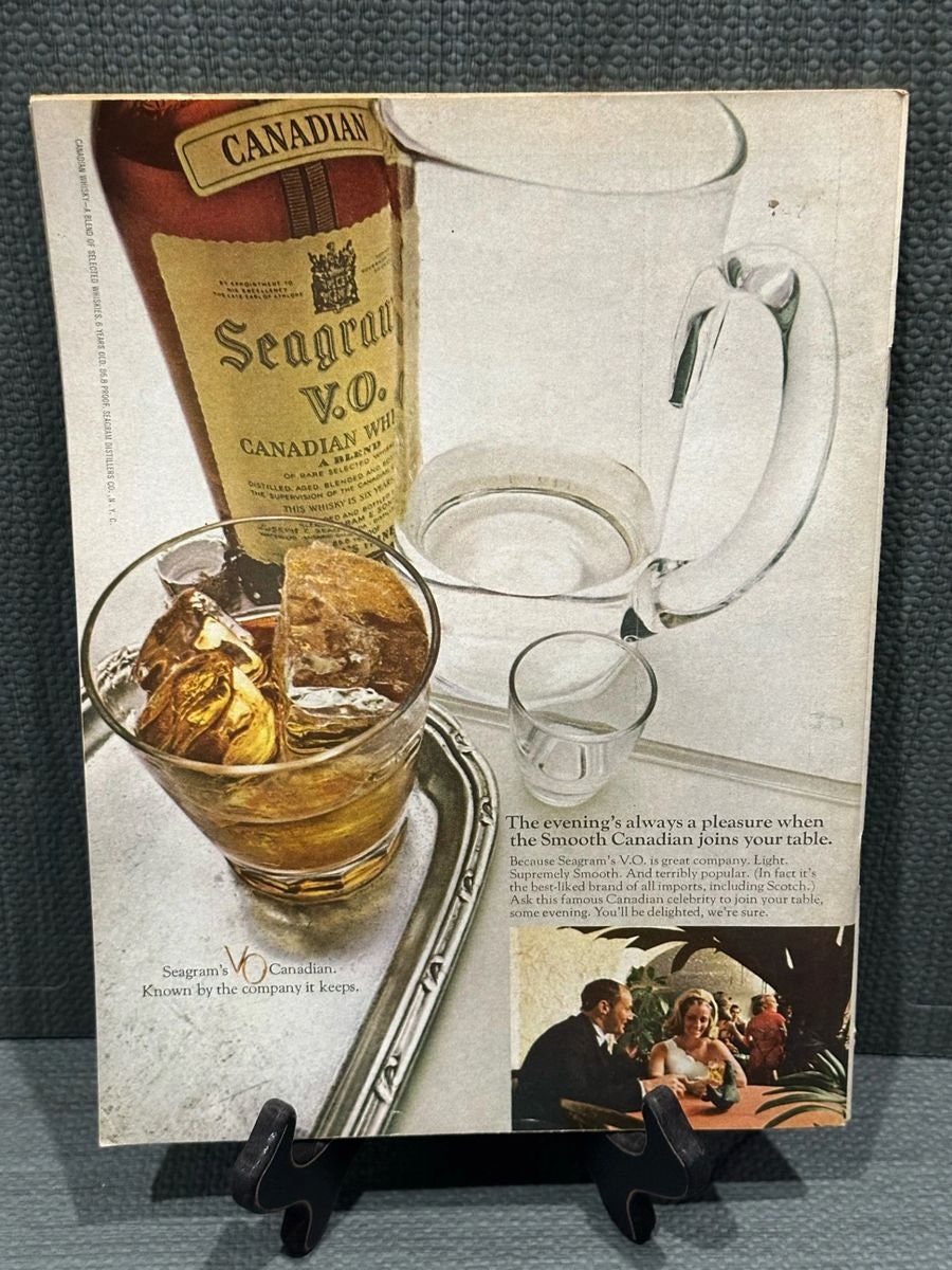 This issue is in good vintage condition, with some minor wear and a slight tear on the cover (see images), adding to its authentic, aged charm. The back cover features a nostalgic Seagram's V.O. Canadian Whiskey advertisement, a true glimpse into 1960s advertising and culture.