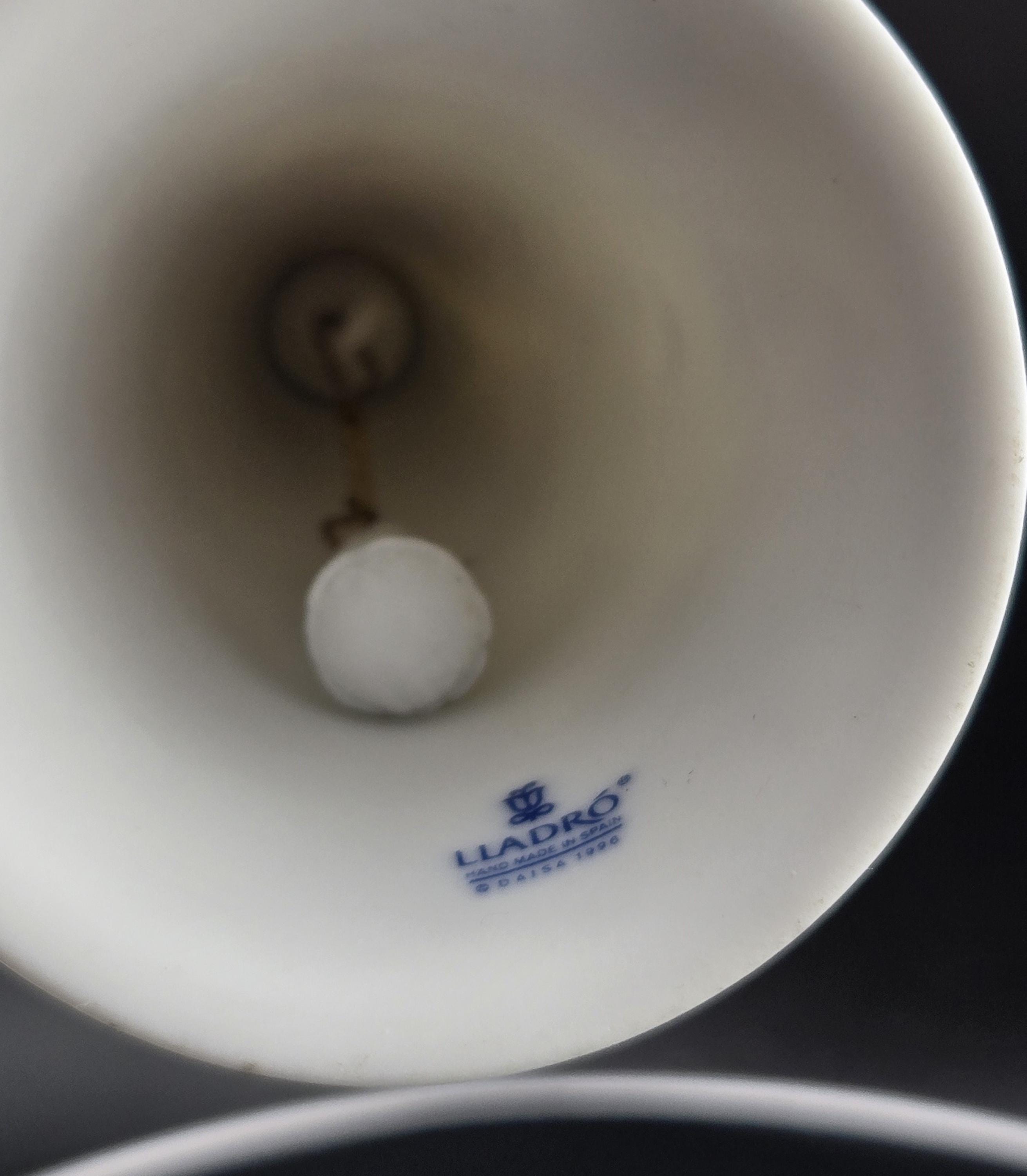 Mark a special moment with this exquisite Lladro "It's a Boy" Porcelain Figurine Bell, a handcrafted collectible from Spain that embodies elegance, charm, and timeless artistry. Featuring an adorable cherubic boy with delicate wings, this figurine rests atop a finely sculpted bell-shaped base, making it a standout addition to any Lladro figurine collection.