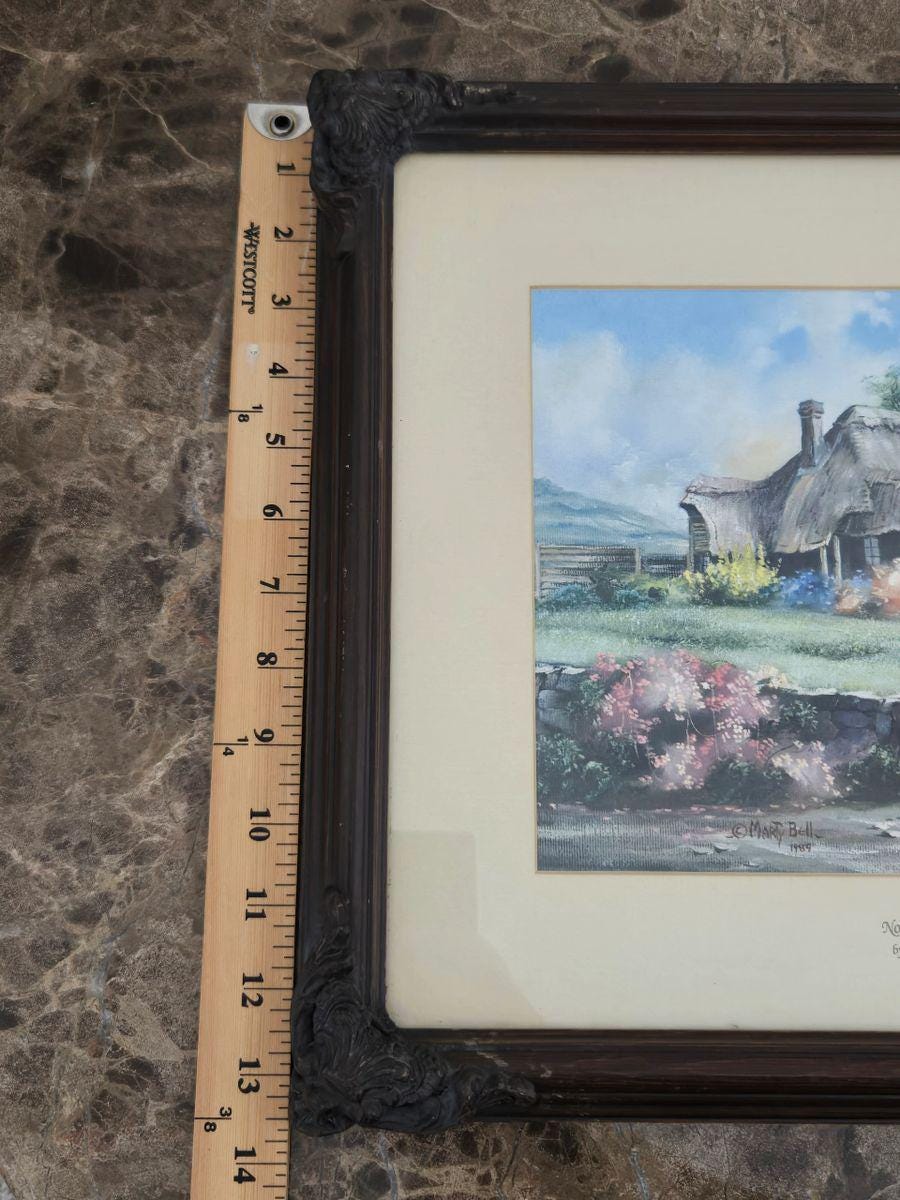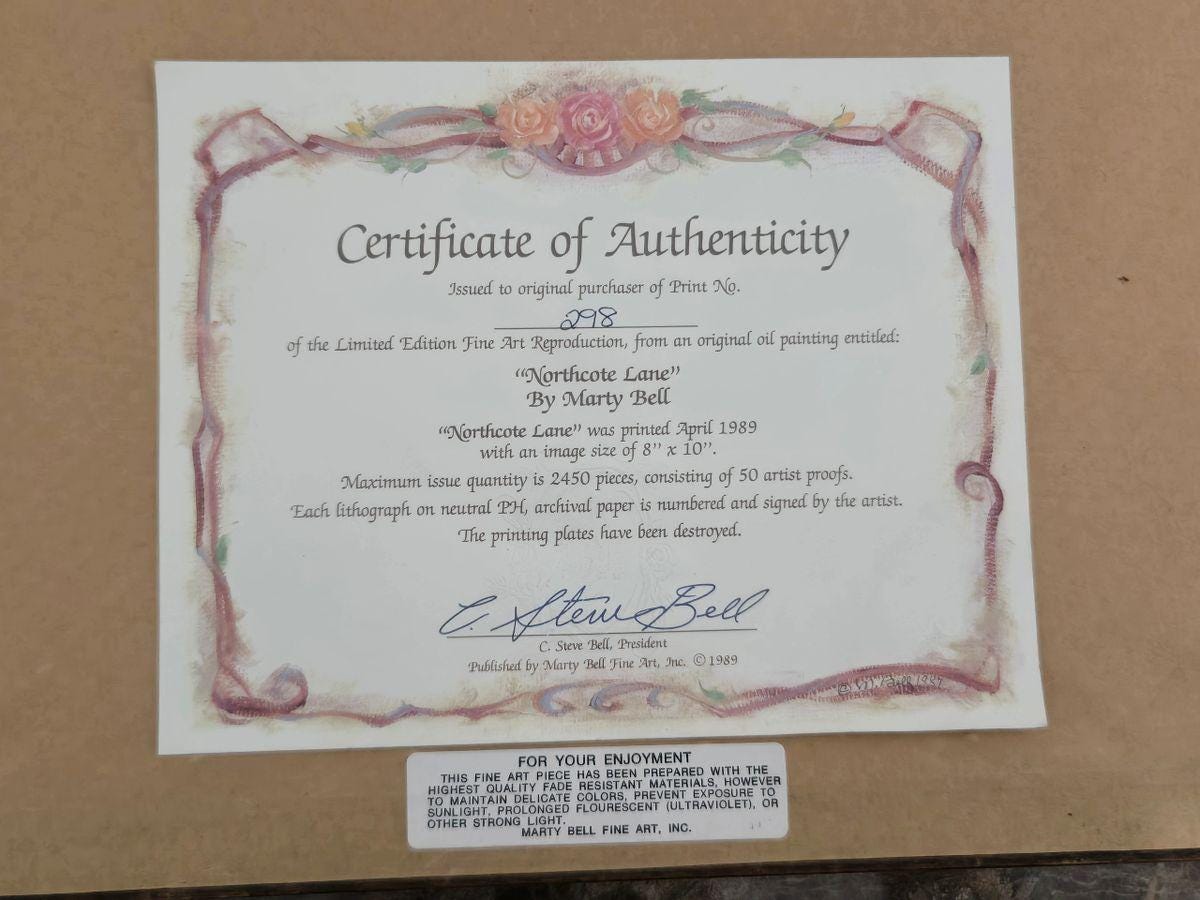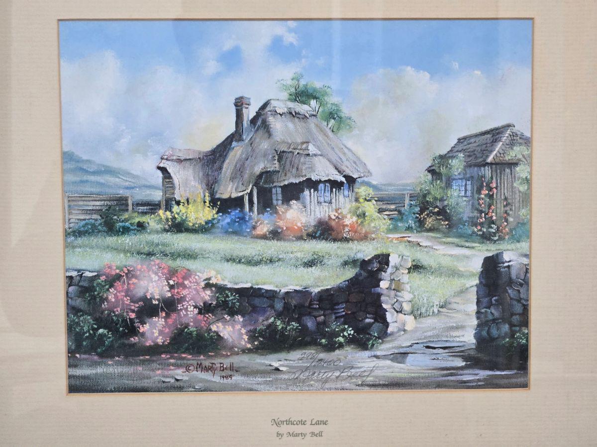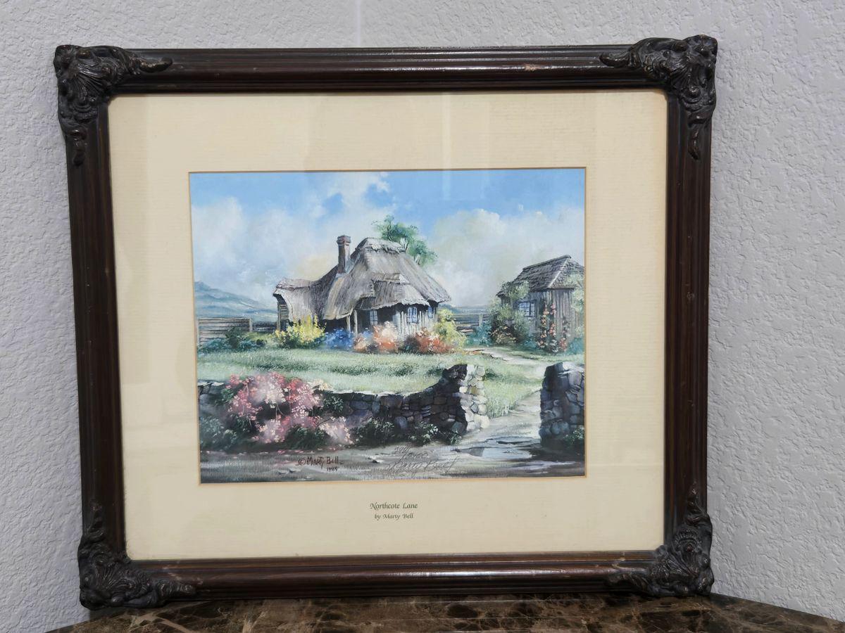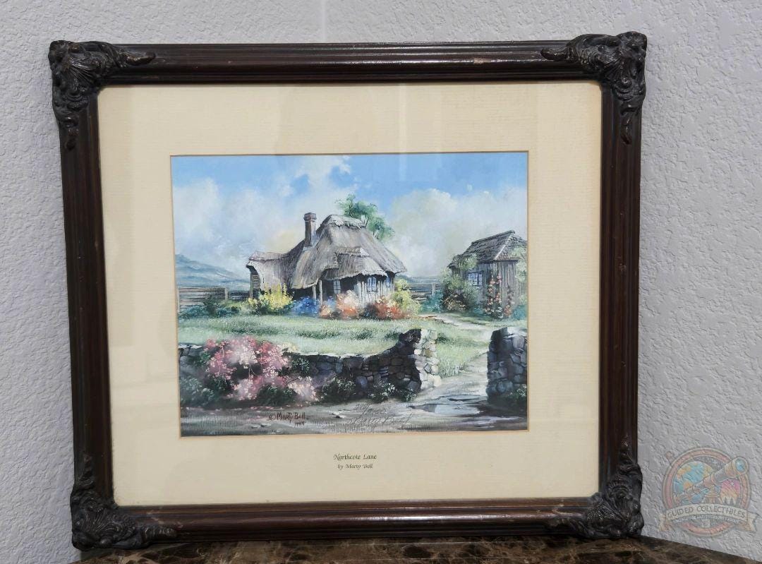 Add a touch of storybook beauty to your walls with “Northcote Lane” by acclaimed artist Marty Bell. This limited-edition lithograph, published in 1989, captures Bell’s signature English countryside charm — a thatched-roof cottage surrounded by blooming gardens and sun-kissed stone paths.