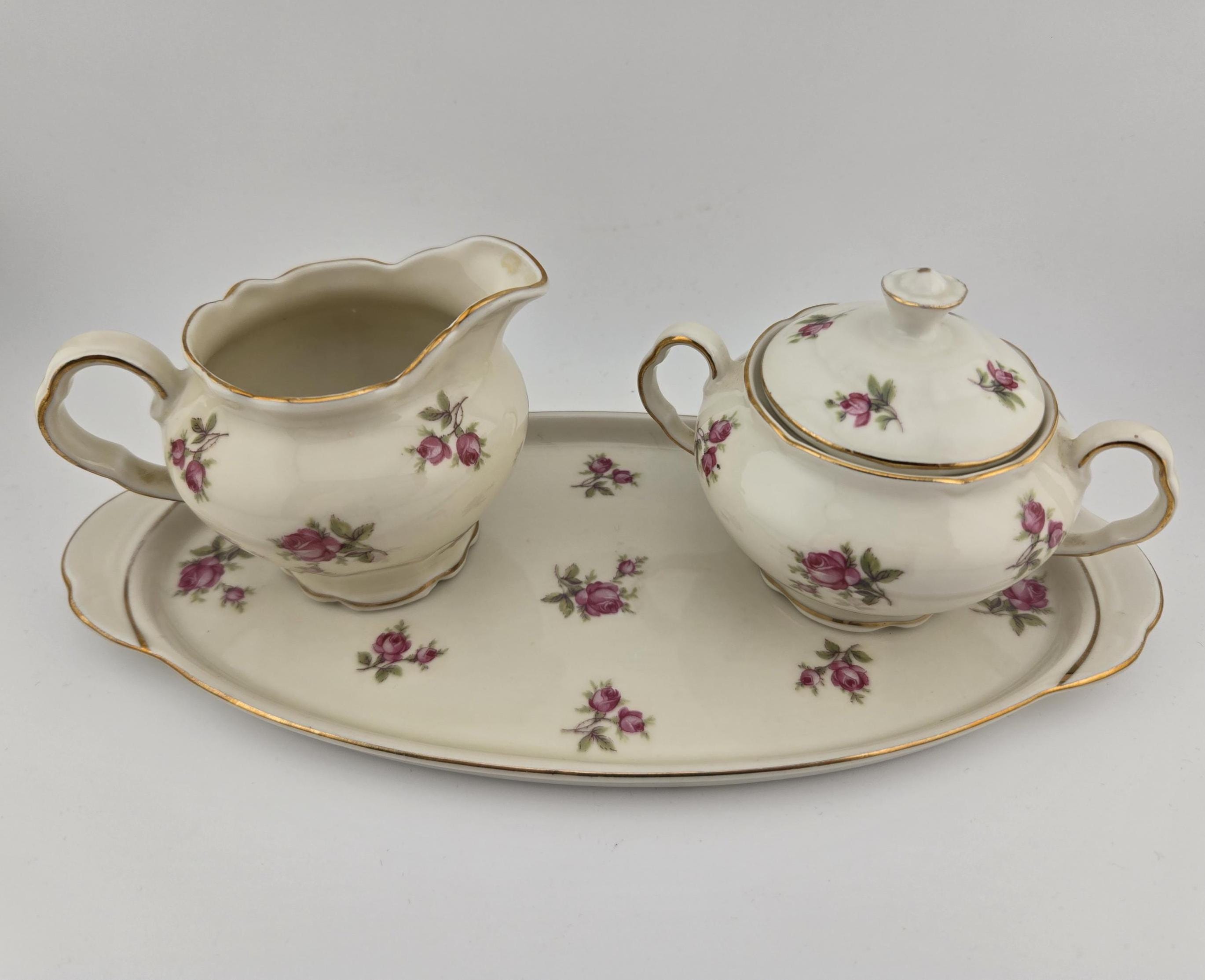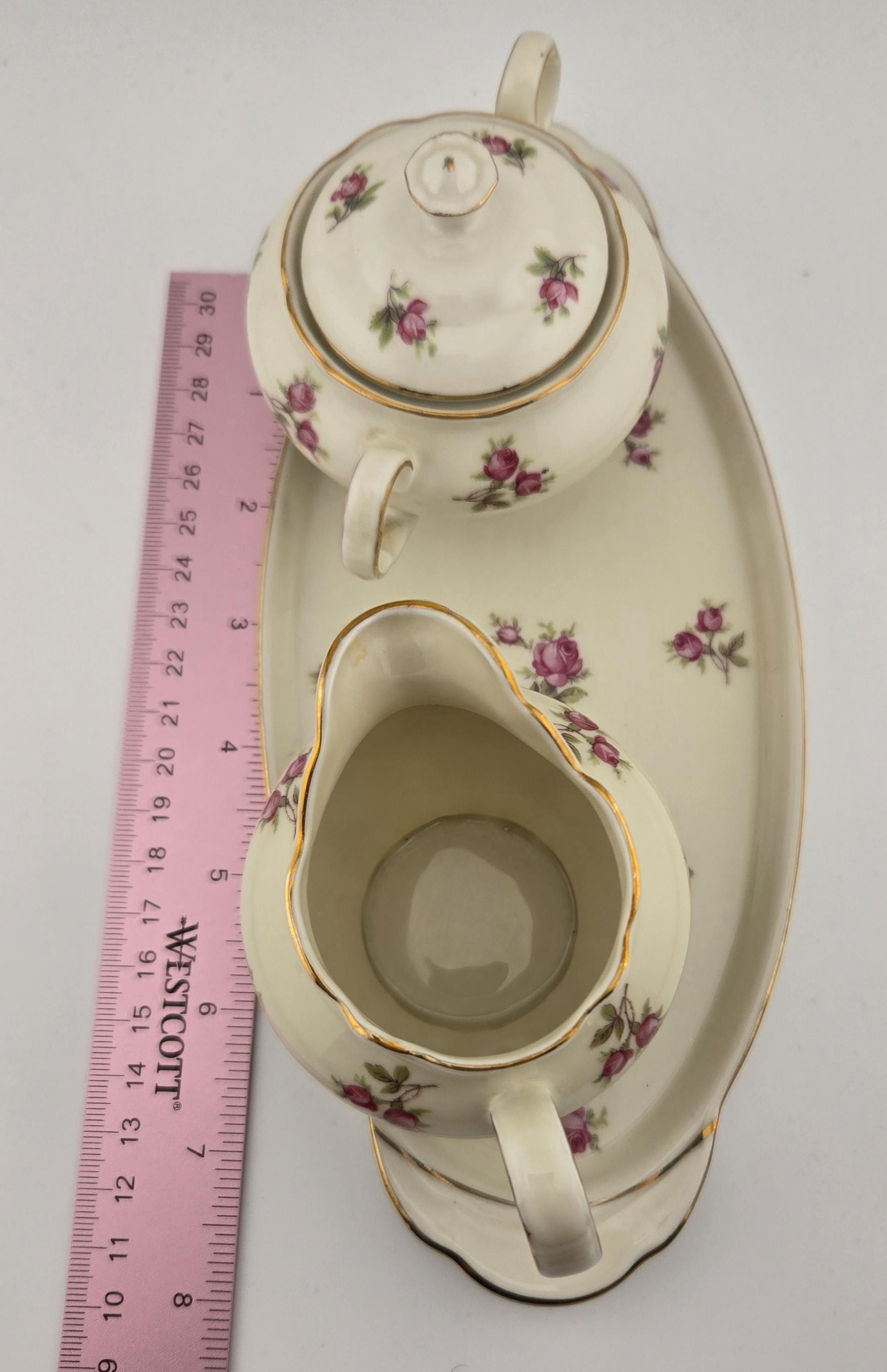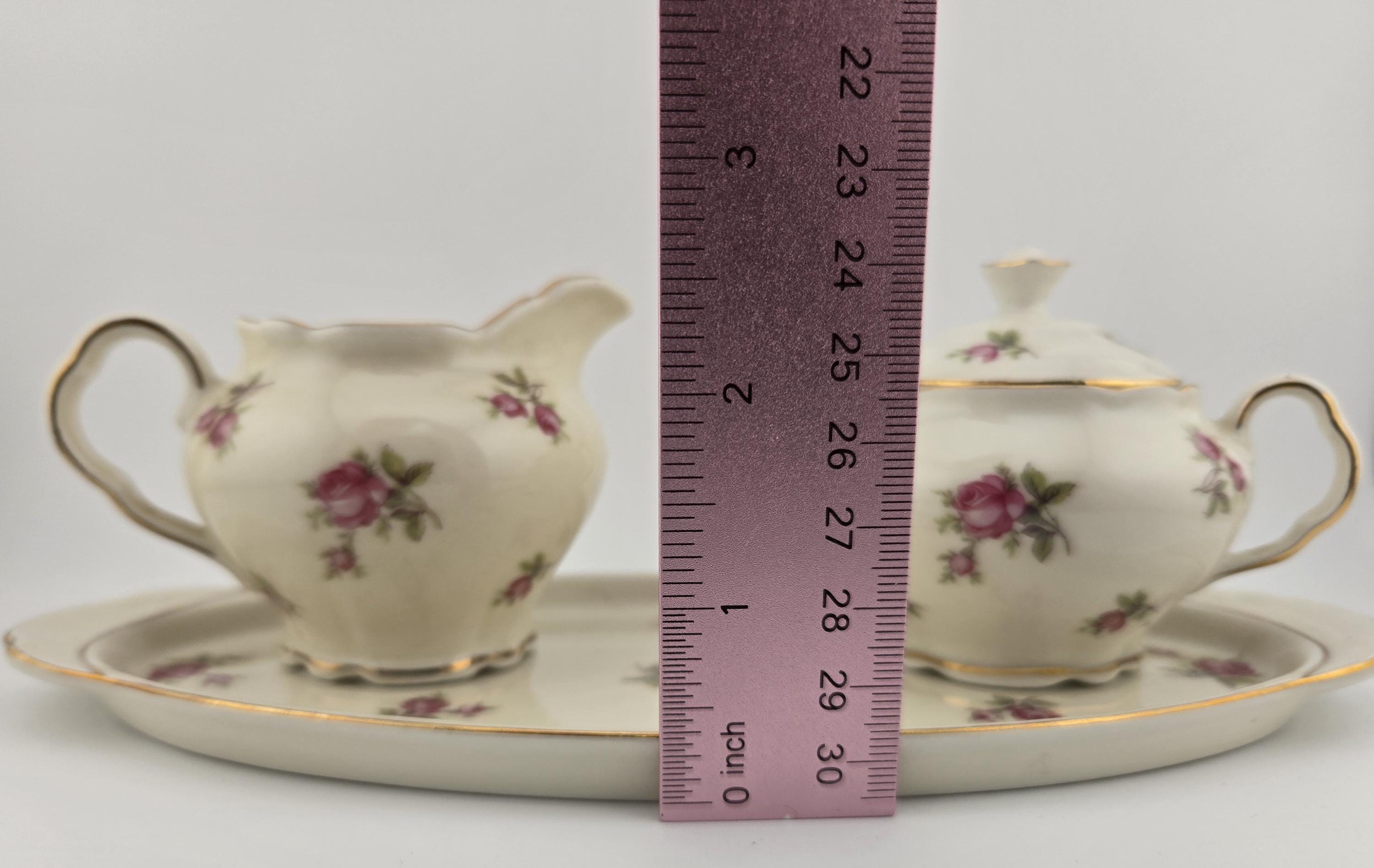 Dimensions: Tray ~9” L | Sugar Bowl ~4” H | Creamer ~3.5” H