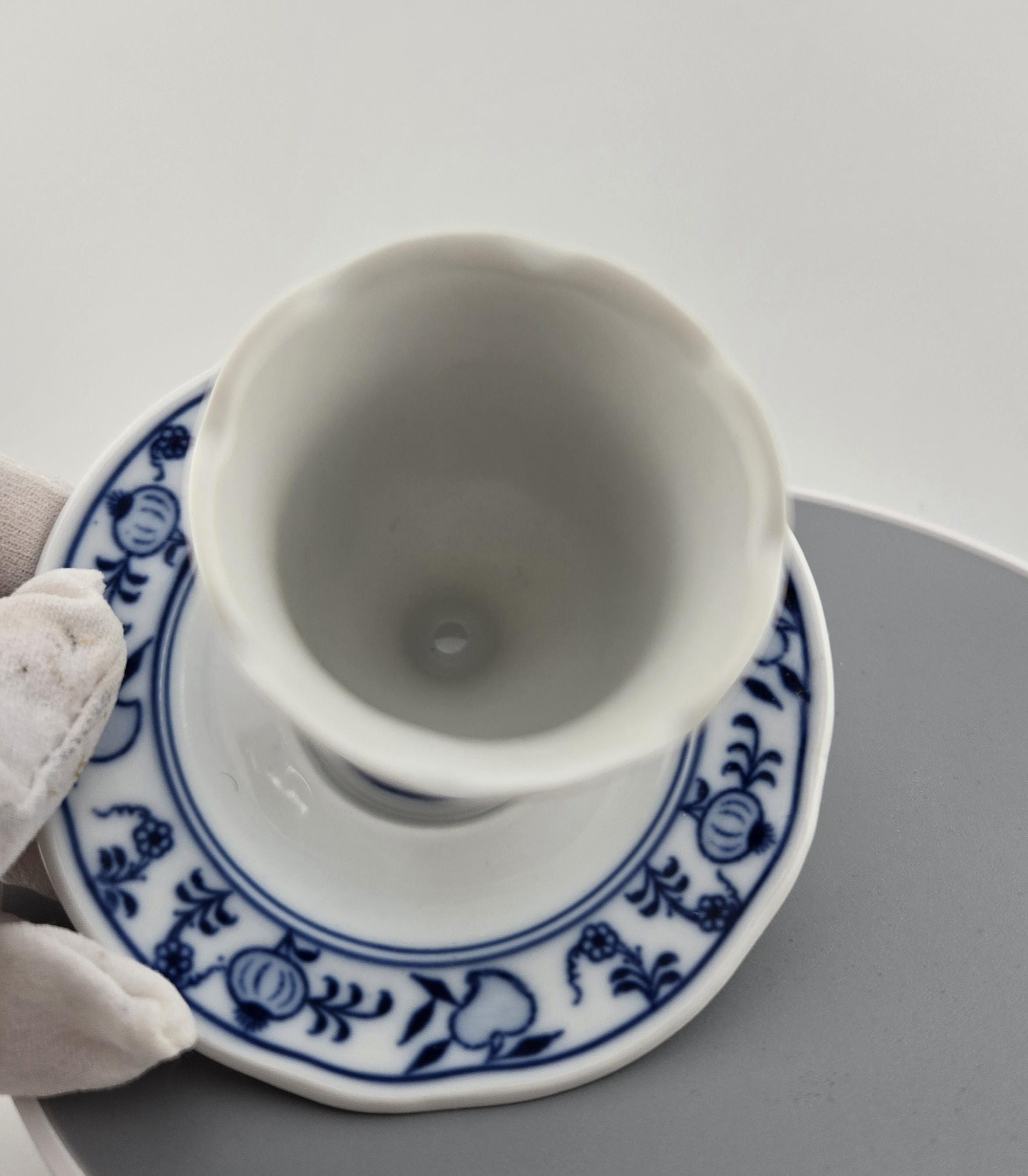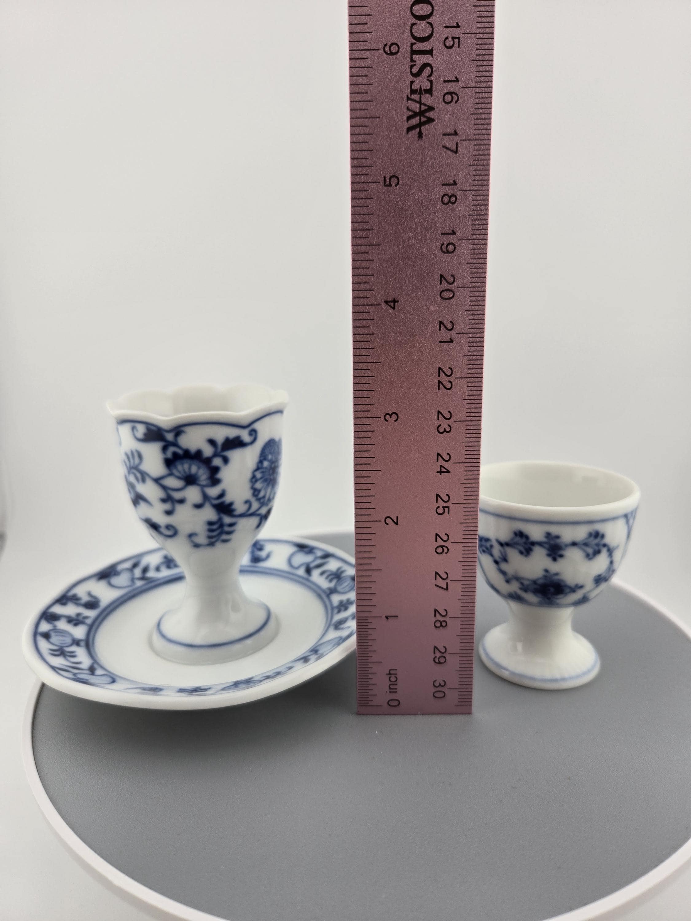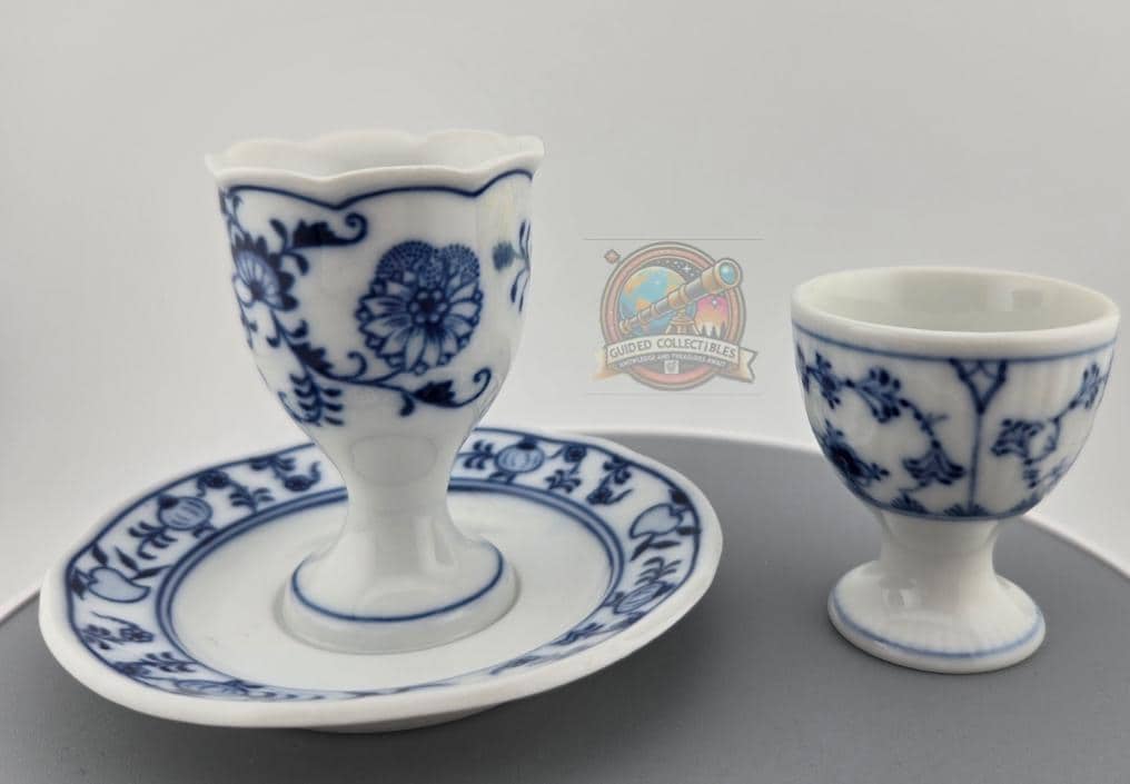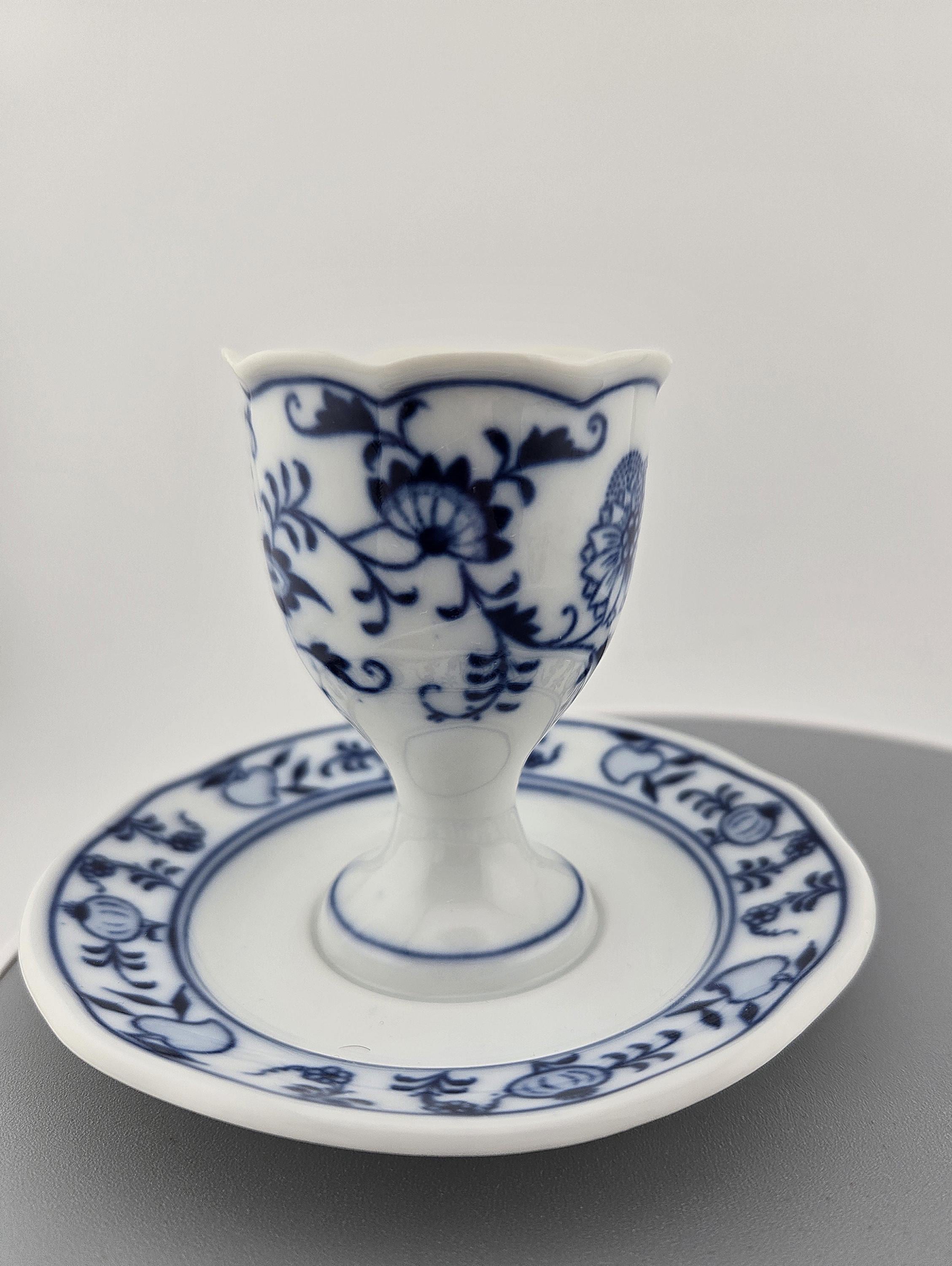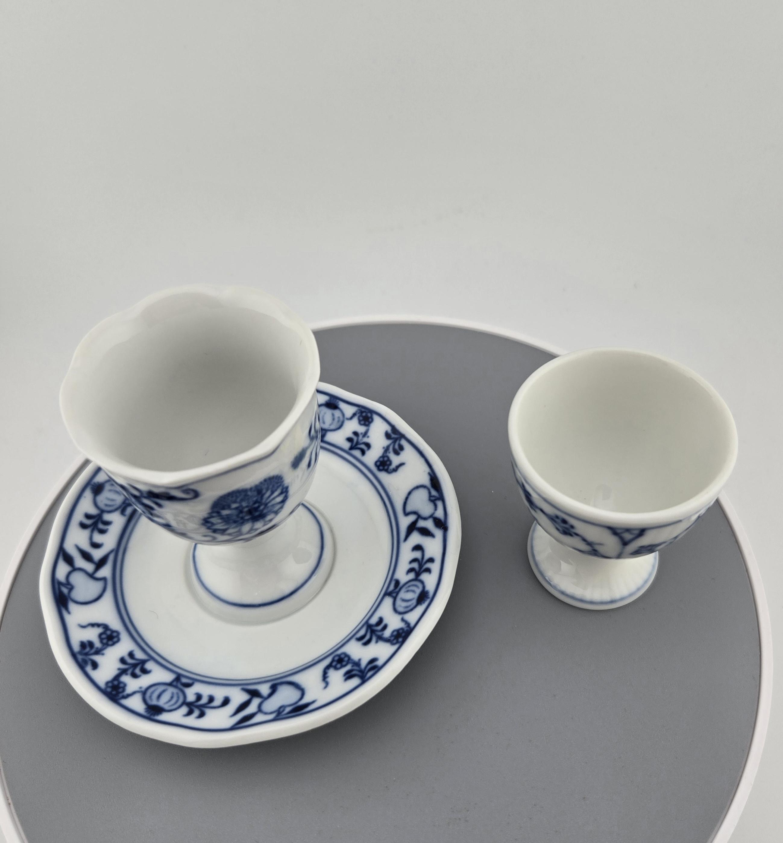 Each piece reflects the brand’s hallmark quality: crisp blue floral motifs, delicate brushwork, and precise firing that gives each coddler a luminous glaze finish. The larger piece stands approximately 3.25 inches tall, perfectly proportioned for display or use. Both are in excellent vintage condition with no cracks, chips, or repairs.