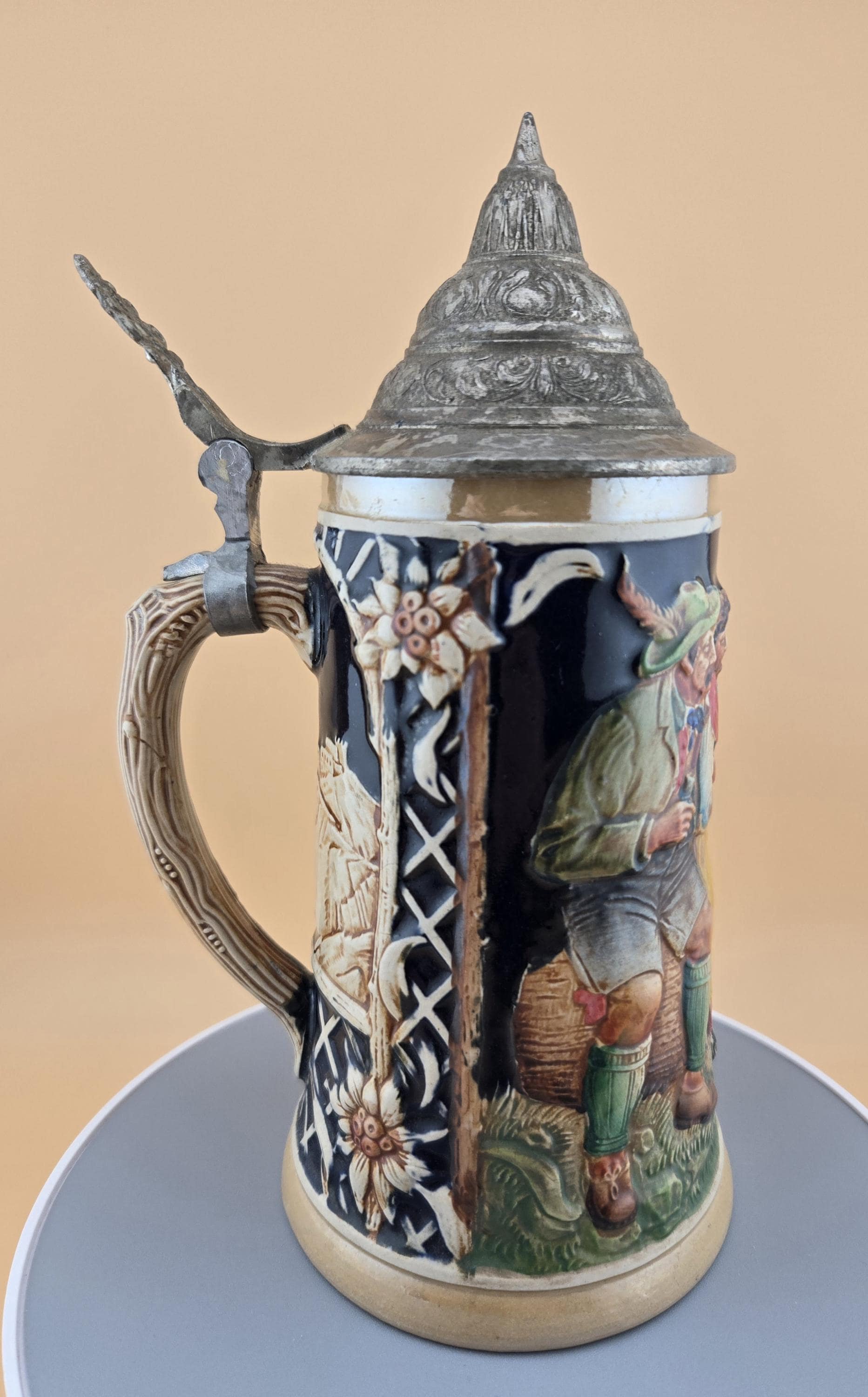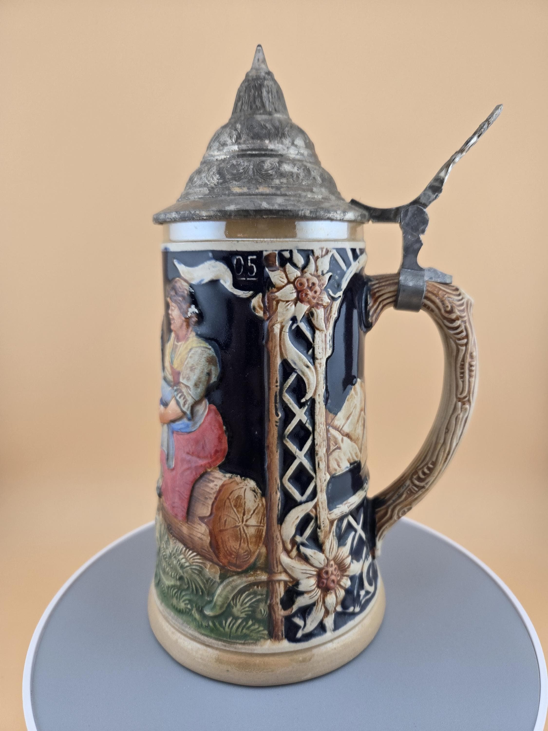 Whether displayed on a shelf, added to a stein collection, or gifted to a beer enthusiast, this vintage piece embodies the charm and craftsmanship of mid-century German pottery.