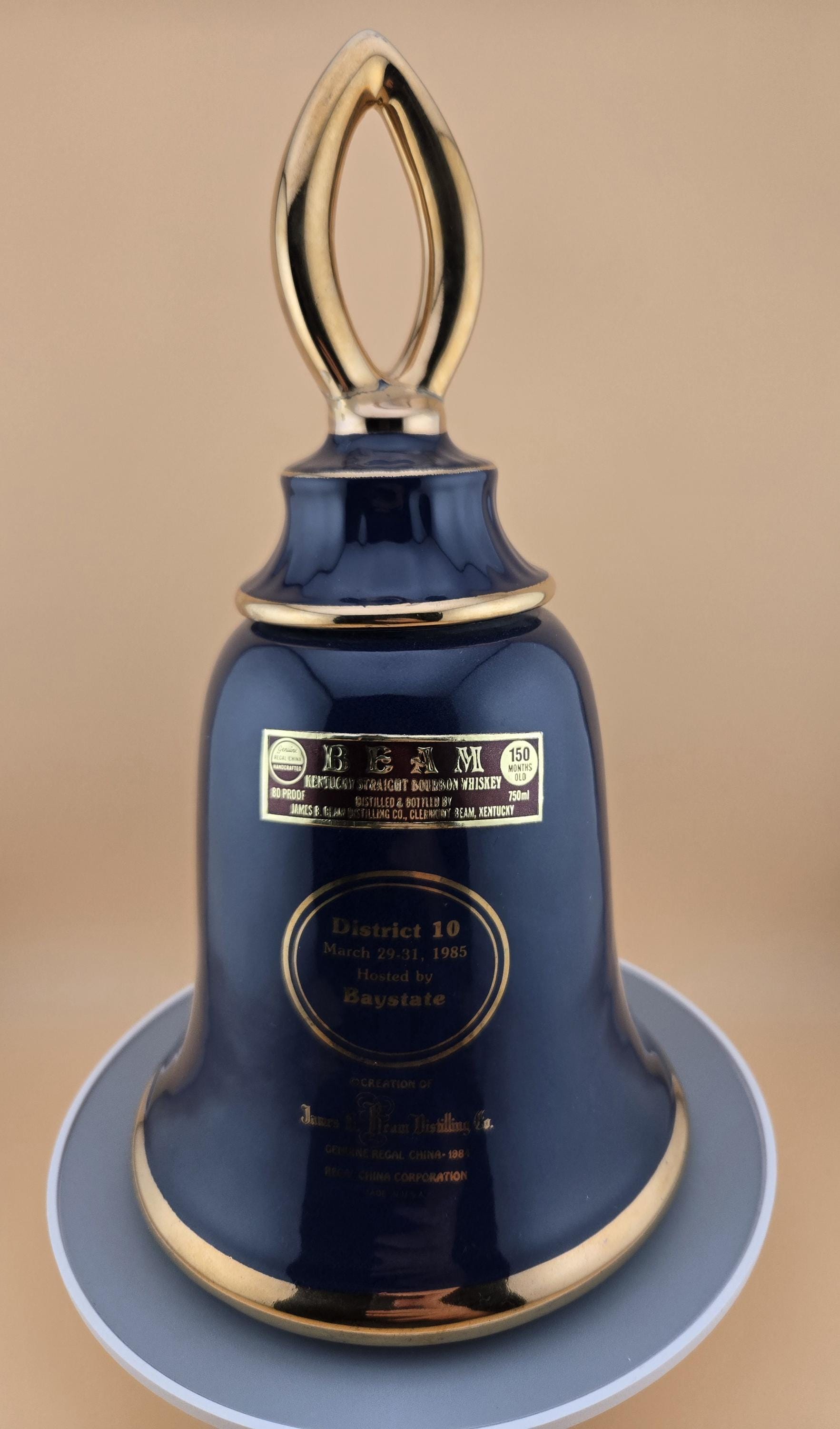 Step back in time with this striking 1984 Jim Beam “Noel” Bell Decanter, a limited-edition collectible produced for District 10’s 1985 Baystate event. Crafted by Regal China Corporation for James B. Beam Distilling Co., this stunning cobalt blue and gold-tone decanter captures the elegance and artistry of vintage Beam releases.