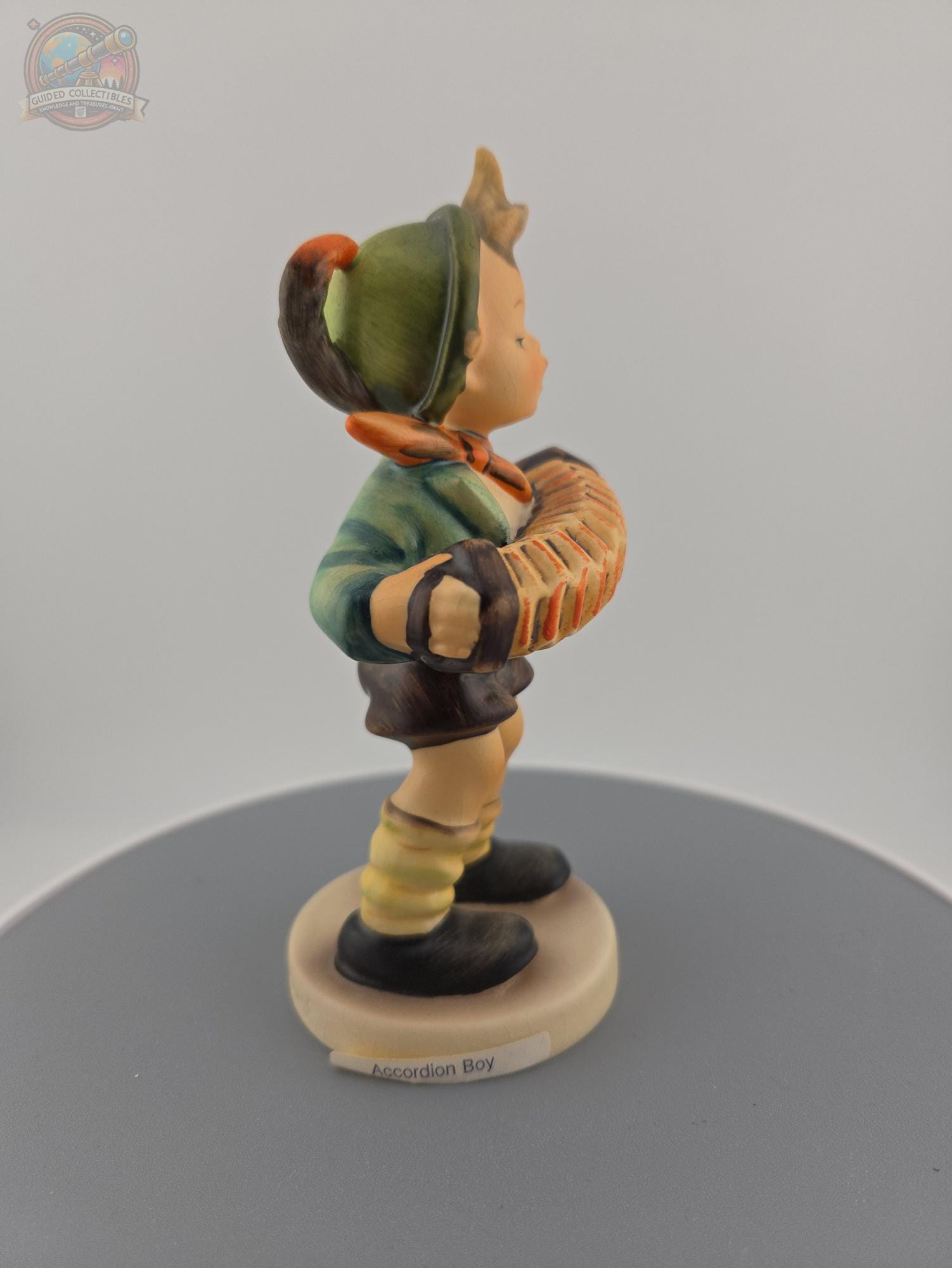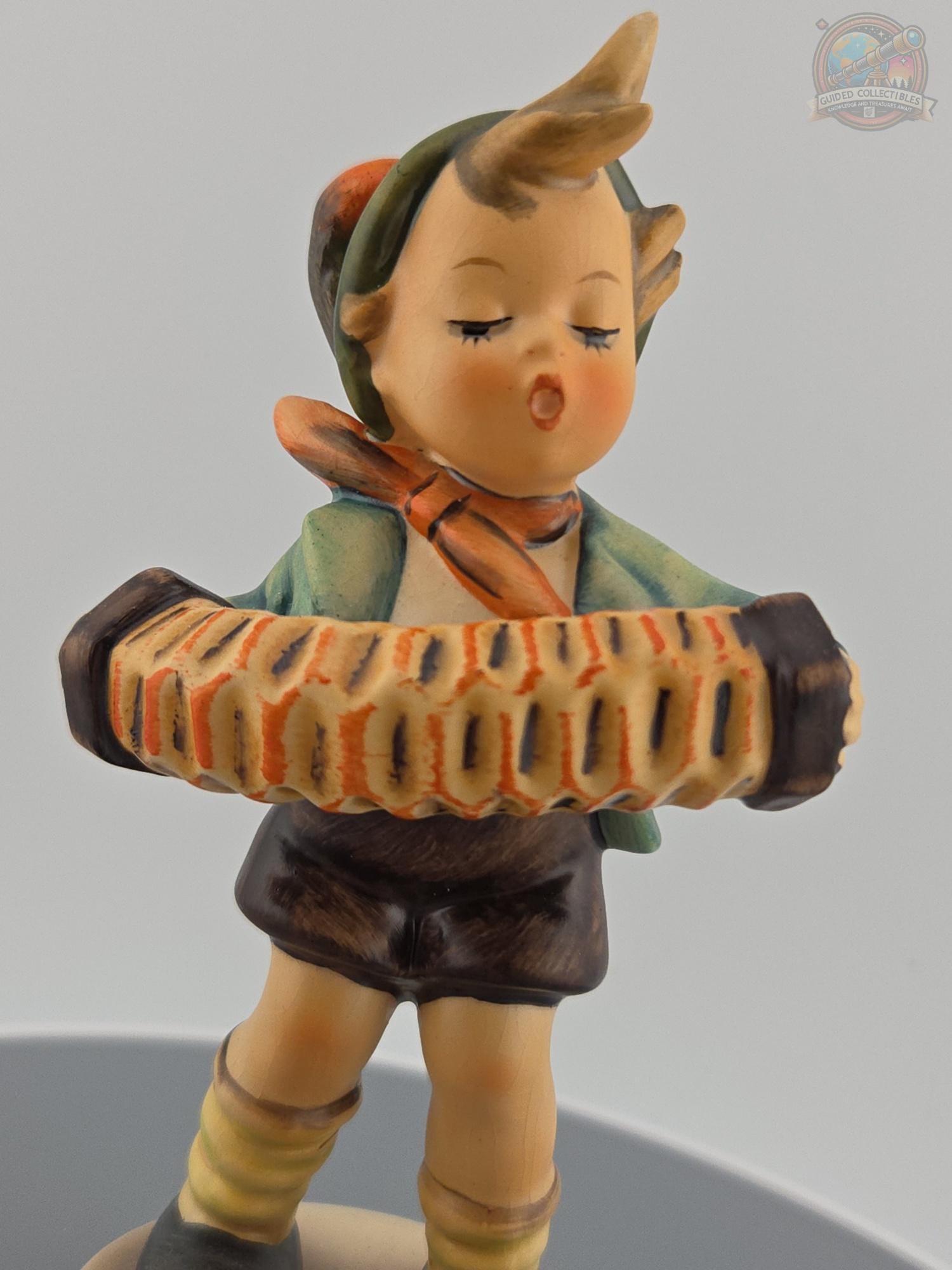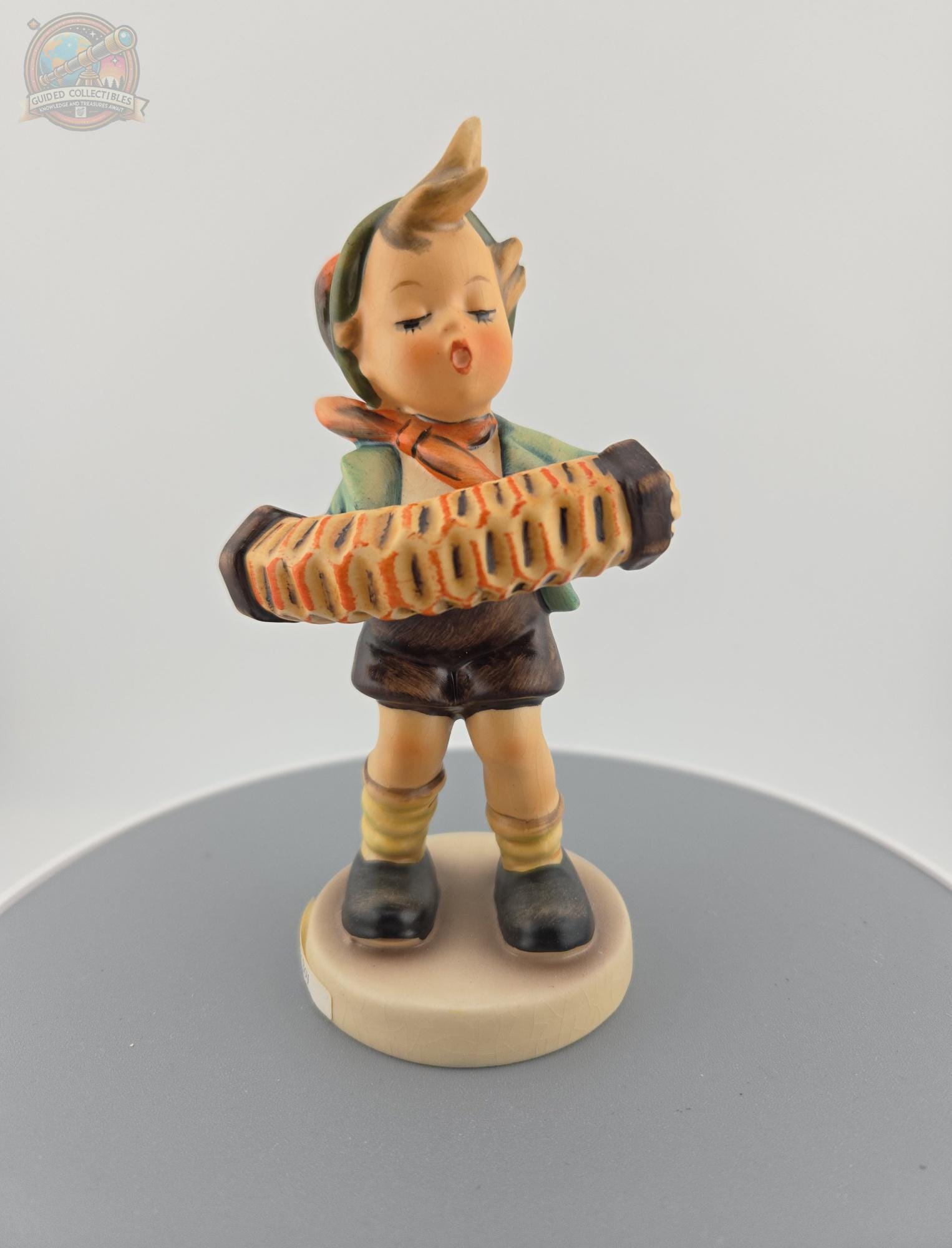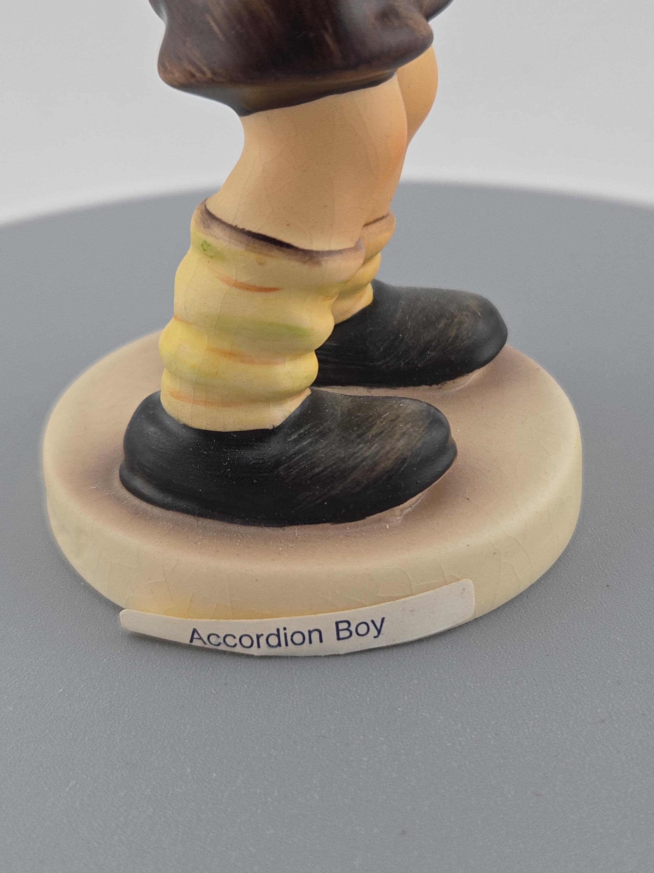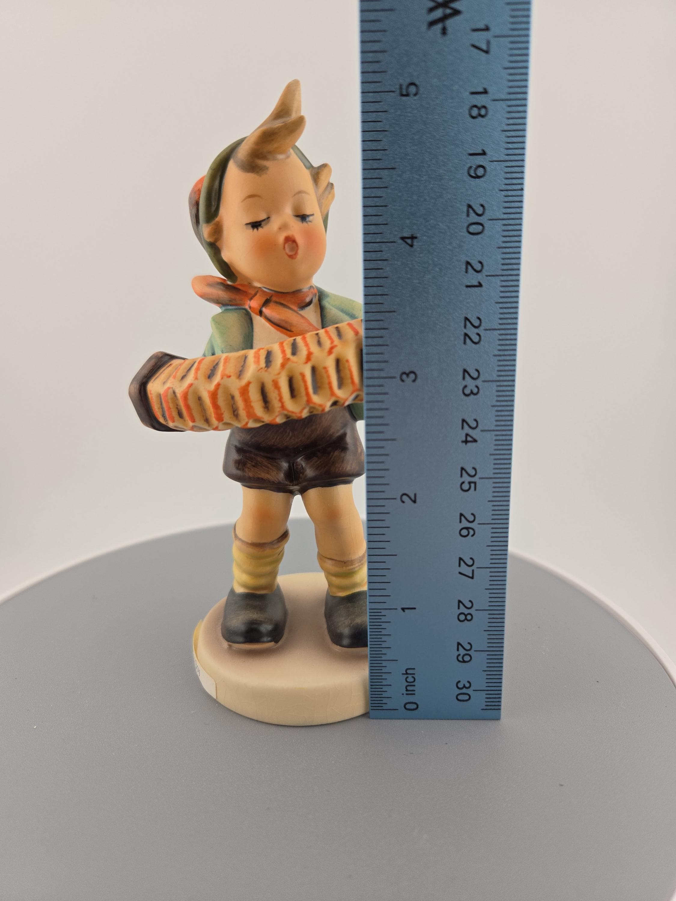 Title: Accordion Boy Maker: Goebel (Hummel) Origin: West Germany Height: Approximately 5 inches Material: Hand-painted porcelain