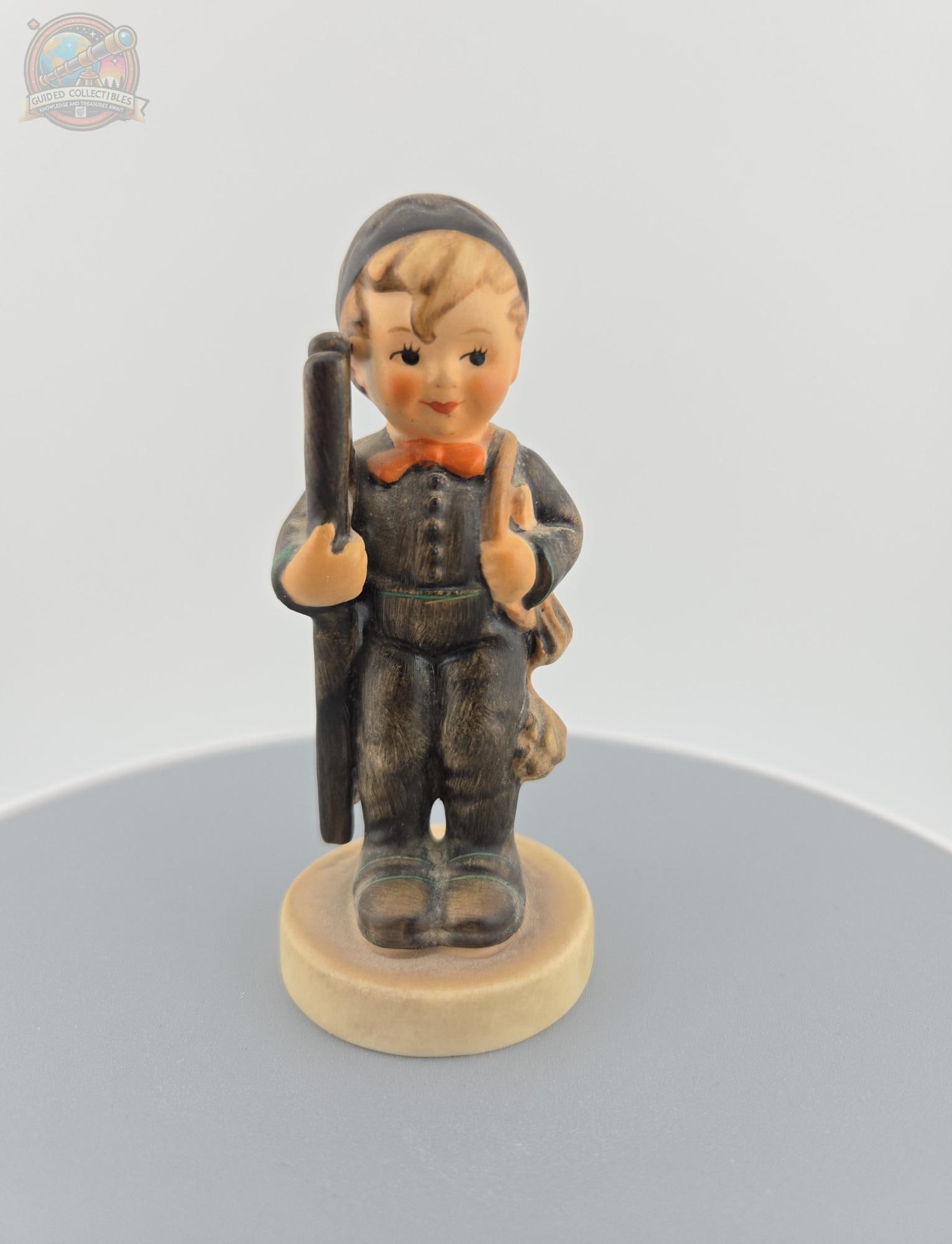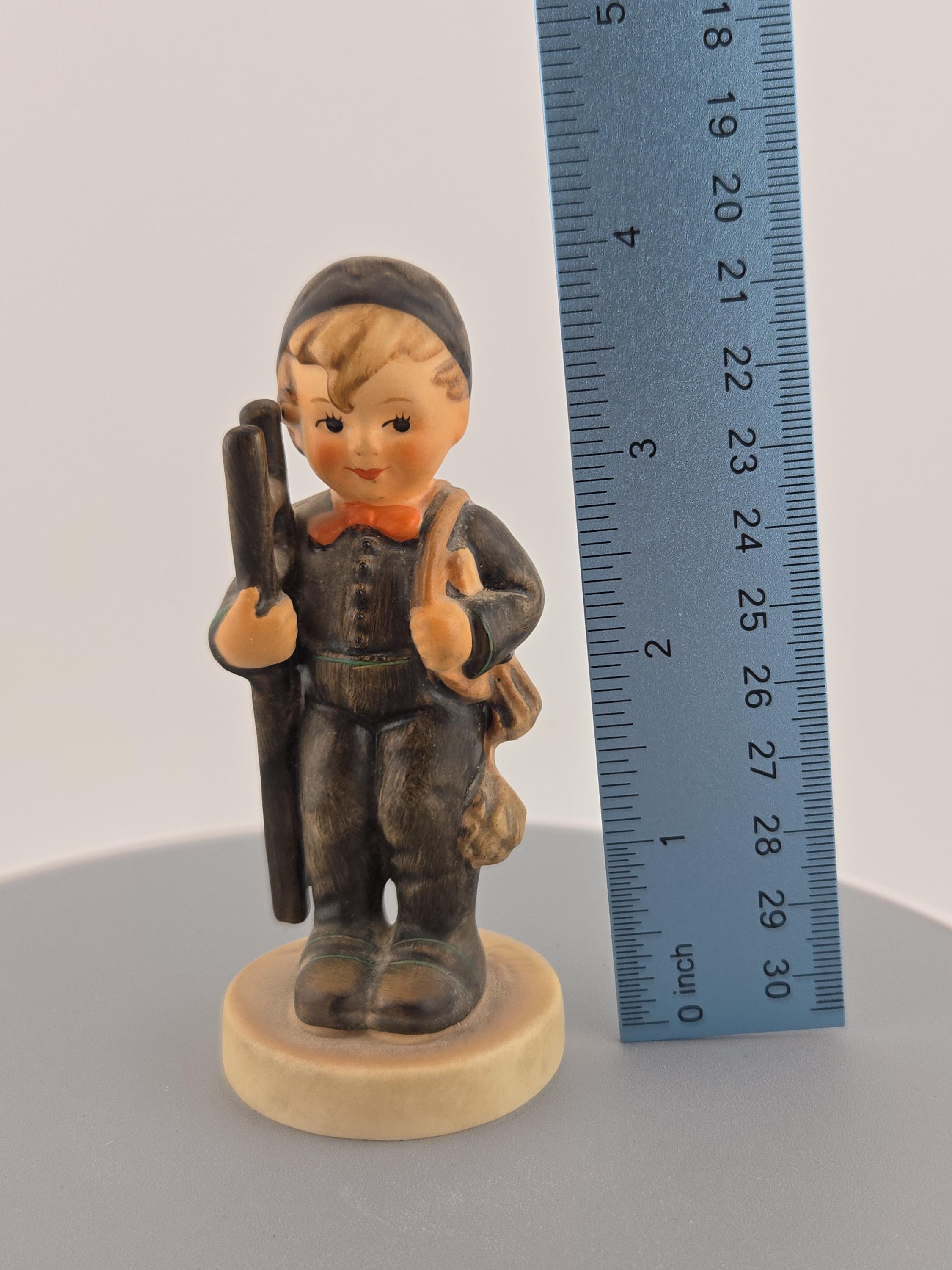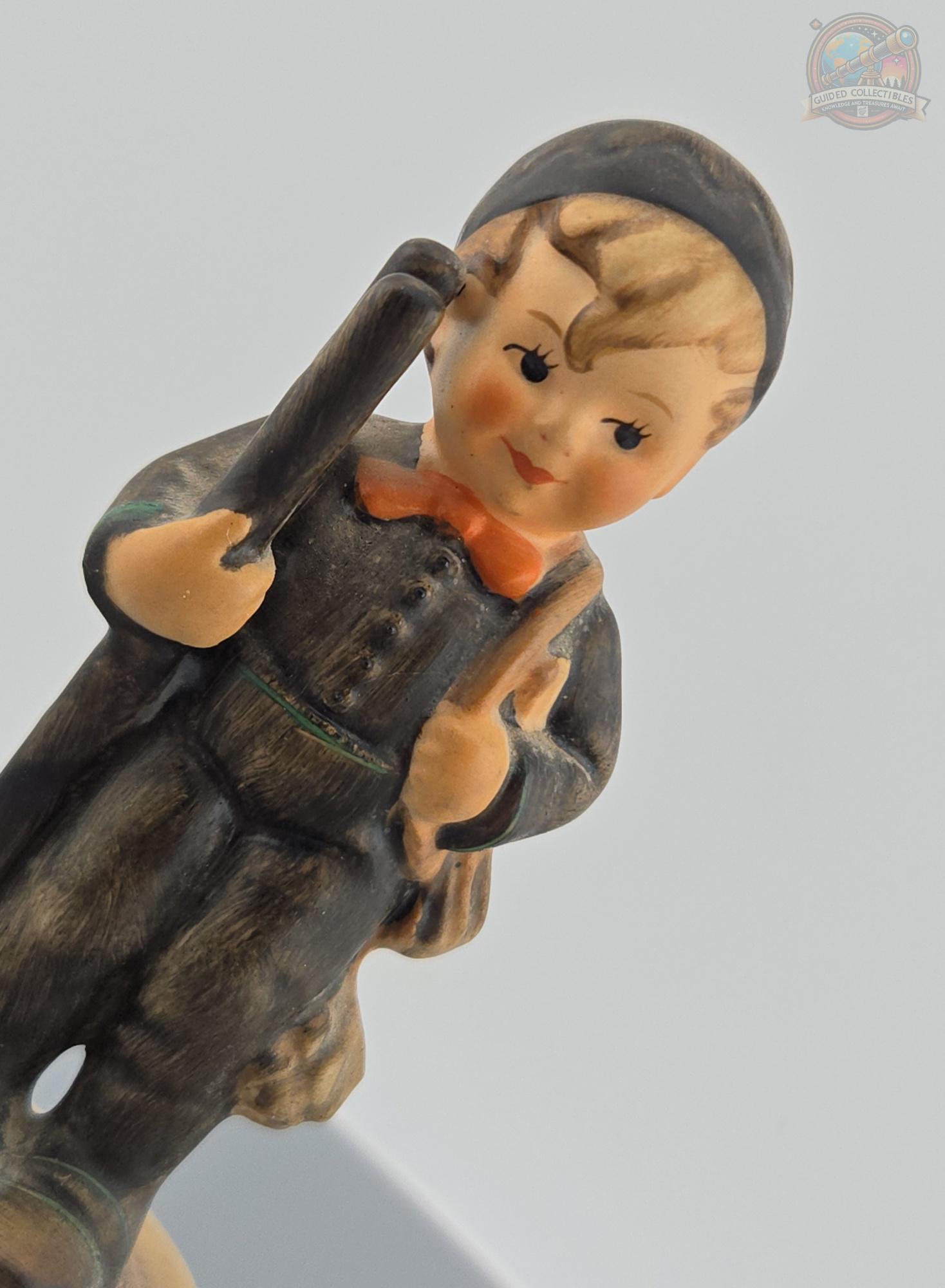 This authentic vintage Goebel Hummel figurine features a classic chimney sweep boy, dressed in traditional attire and carrying a ladder and satchel. Known for its nostalgic charm and detailed hand-painted finish, this piece embodies the timeless artistry of M.I. Hummel designs.