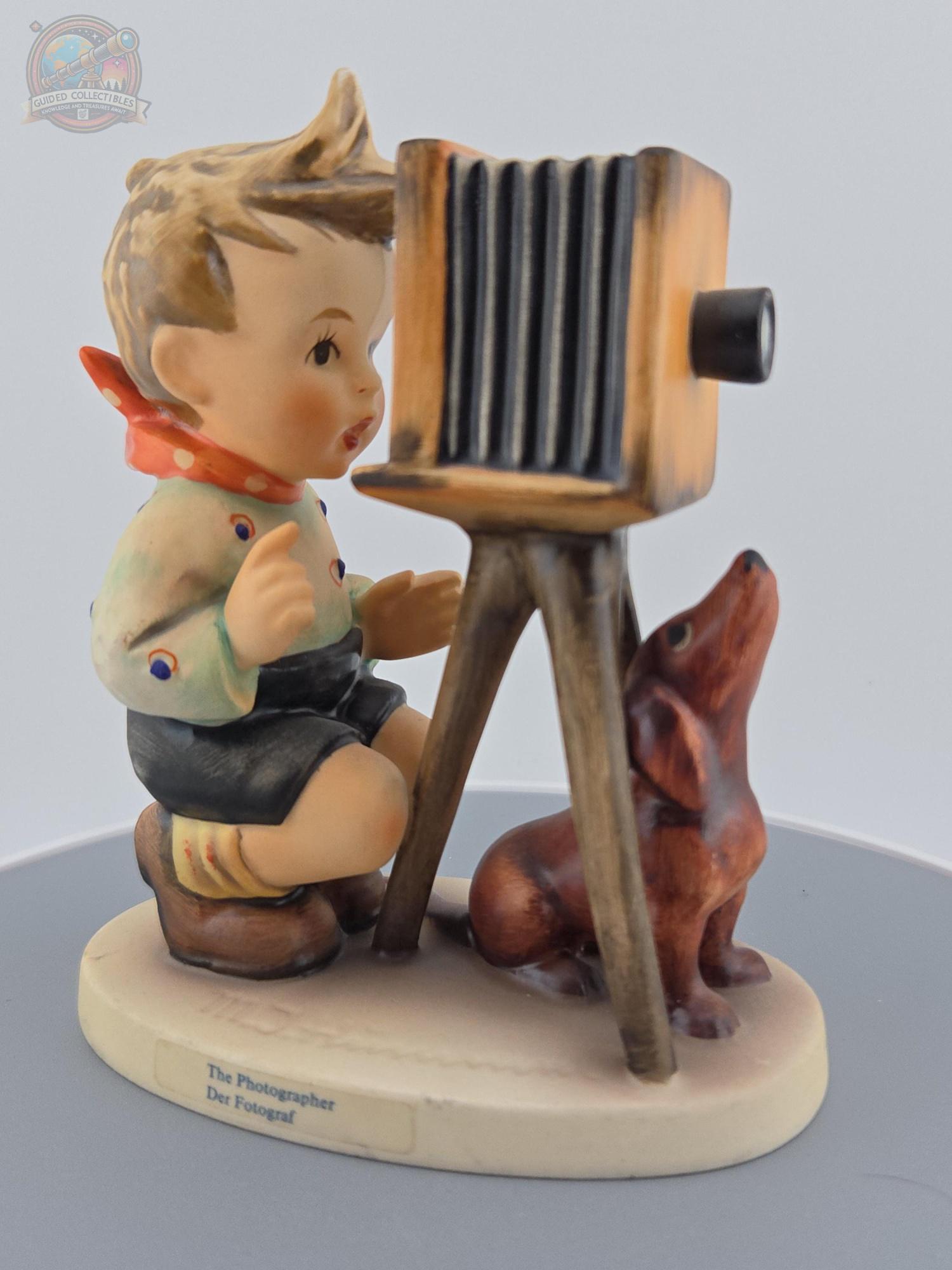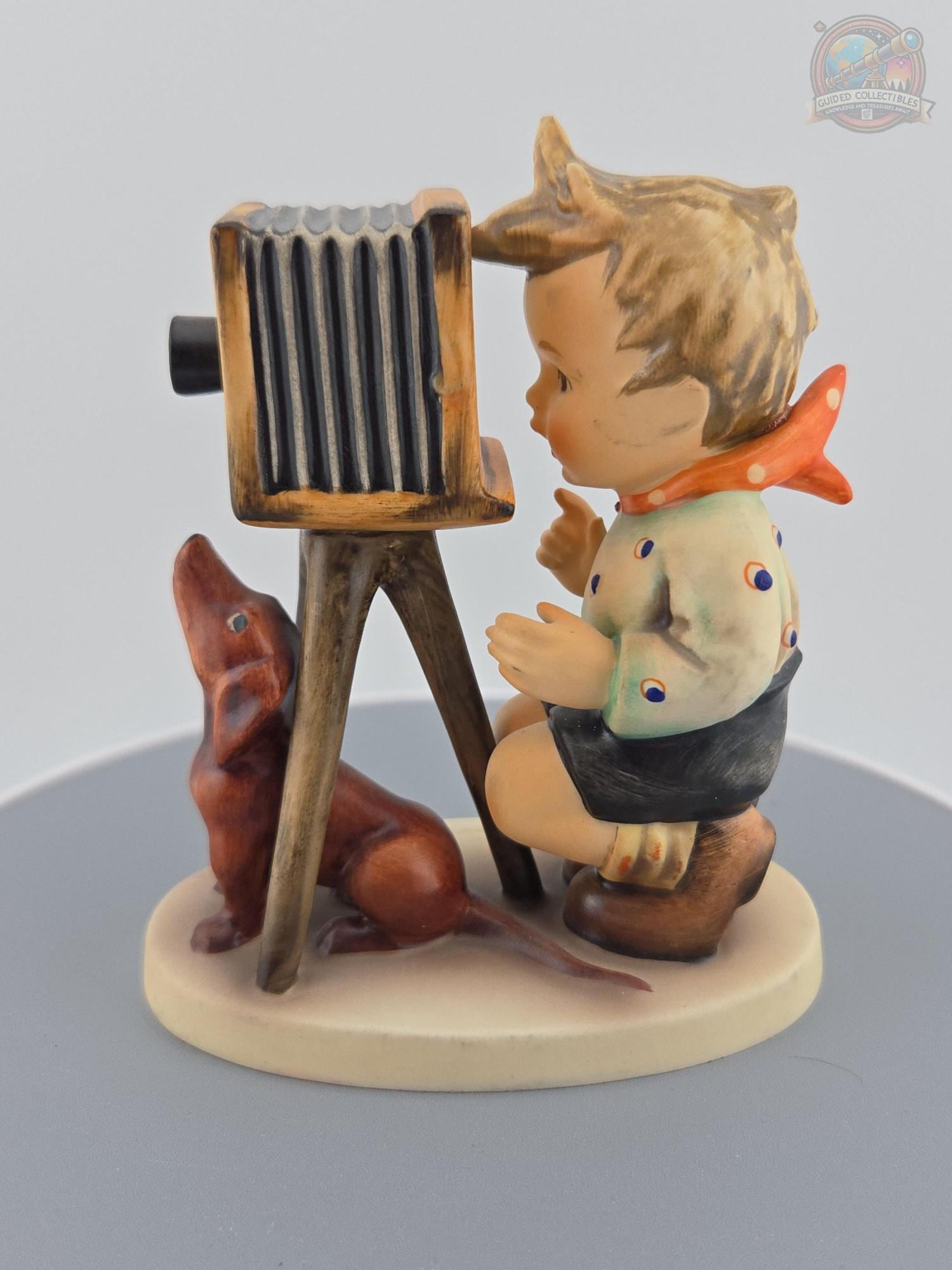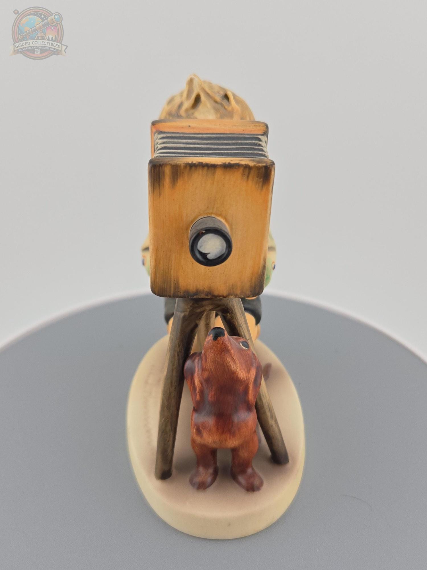Charming vintage Goebel Hummel “The Photographer” figurine featuring a child and loyal dog posing with a classic camera. A timeless German porcelain collectible with wonderful detail and character.
