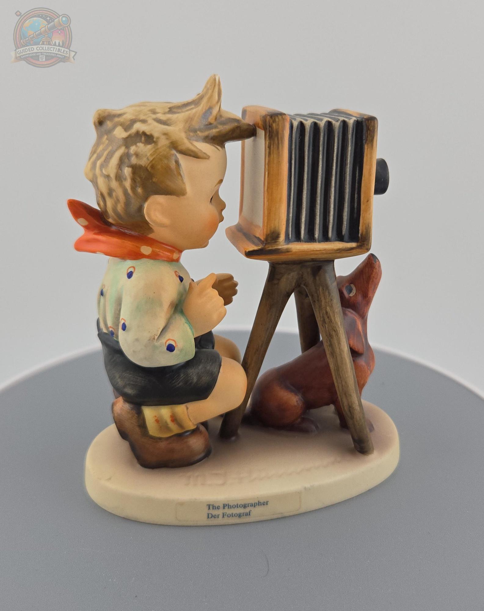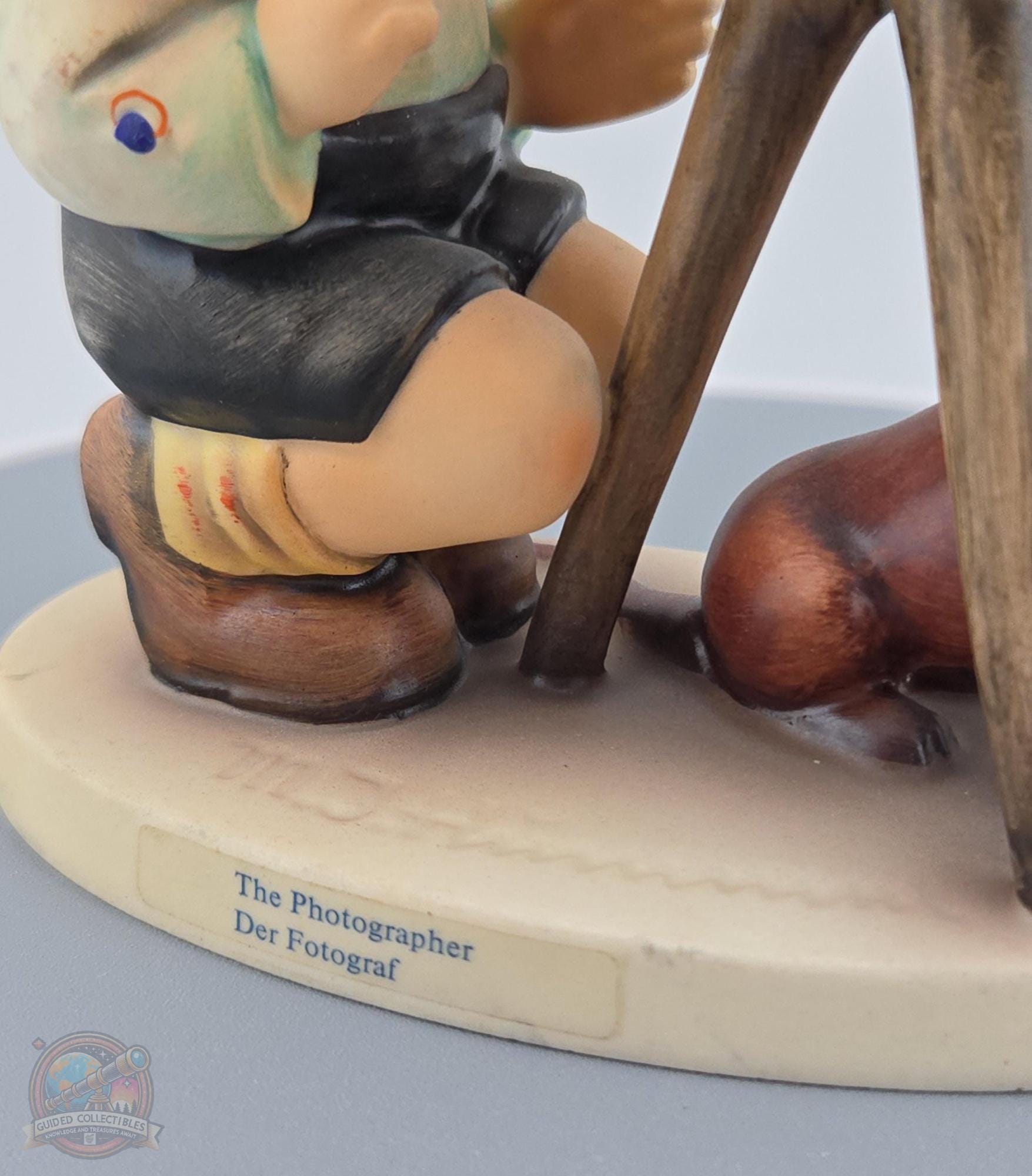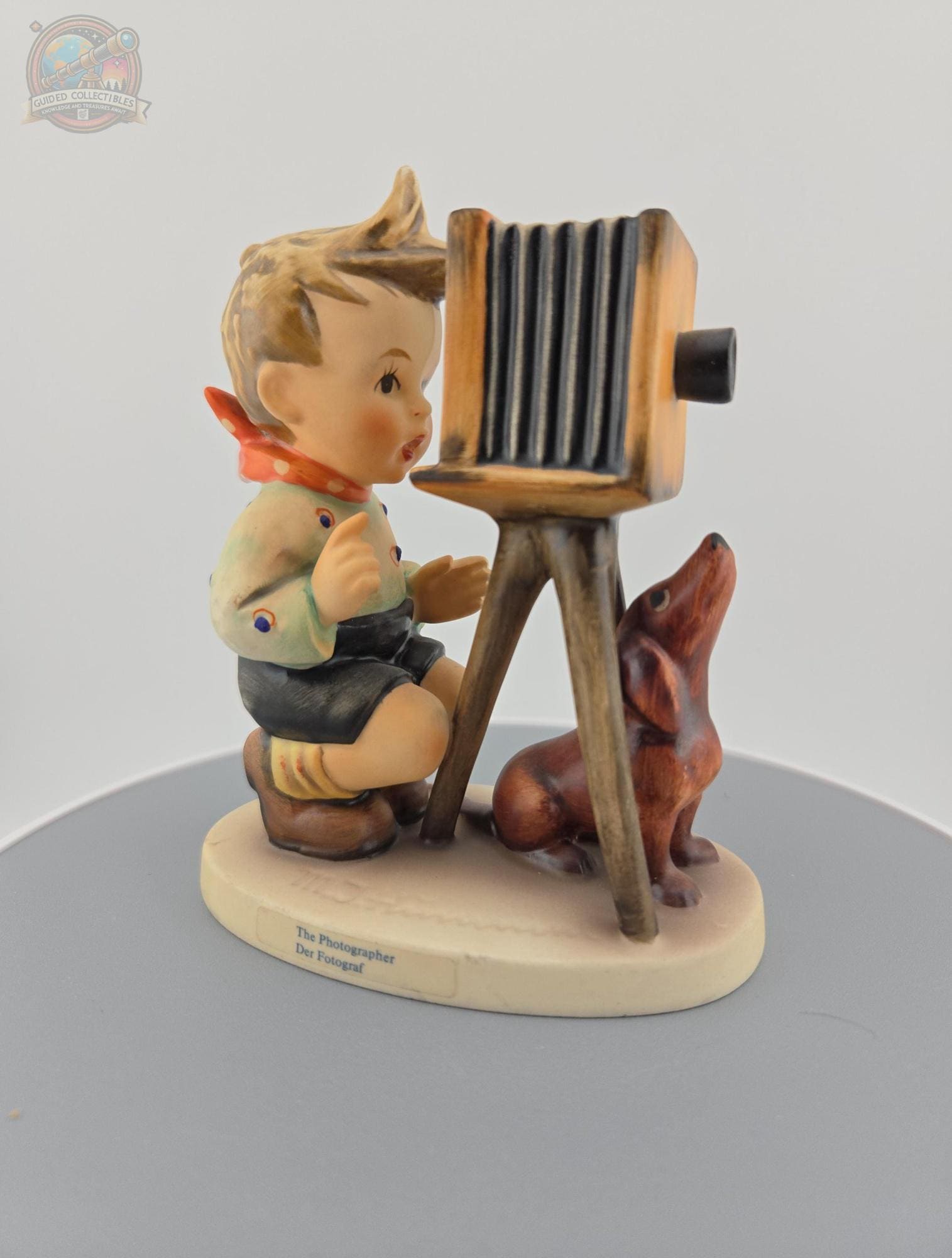 Charming vintage Goebel Hummel “The Photographer” figurine featuring a child and loyal dog posing with a classic camera. A timeless German porcelain collectible with wonderful detail and character.