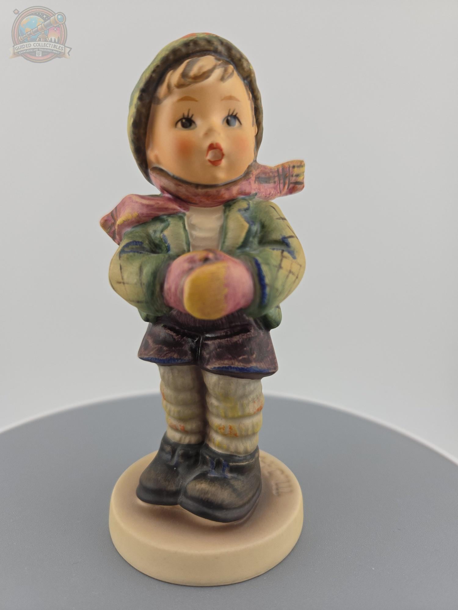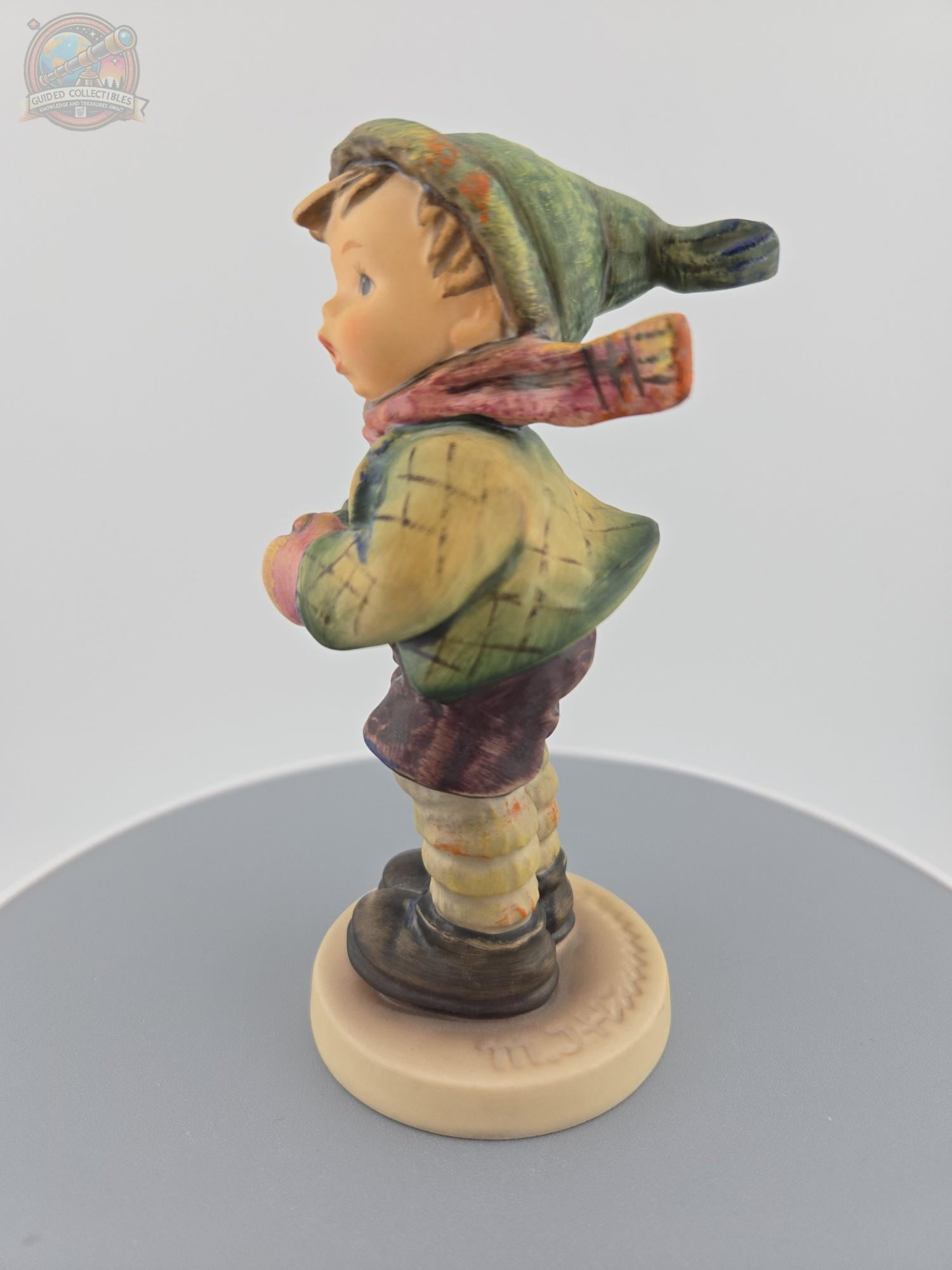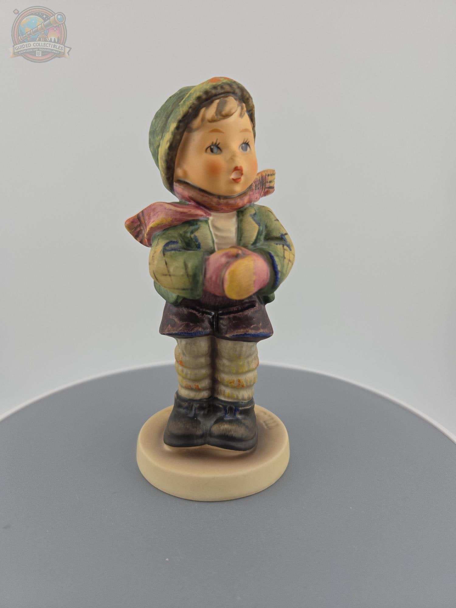 This piece showcases the iconic M.I. Hummel style, with soft facial features, hand-painted detail, and traditional clothing including a green cap, scarf, and textured jacket. A timeless representation of childhood innocence, this figurine is a wonderful addition to any Hummel or vintage porcelain collection.